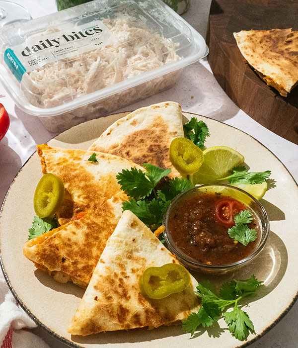 - It’s quick and convenient to make thanks to key Heinen’s ingredients. Skip the prep and get dinner on the table faster with Heinen’s Daily Bites pulled chicken and fresh recipe ready vegetables. These time-saving ingredients make homemade quesadillas incredibly simple! Simply fill, cook, and enjoy.
