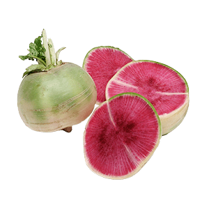 Though they are slightly sweeter than an ordinary radish, watermelon radishes taste nothing like summer’s most beloved fruit. When cut open, the first thing you will notice is their vibrant magenta color surrounded by a green burst, just like a watermelon.