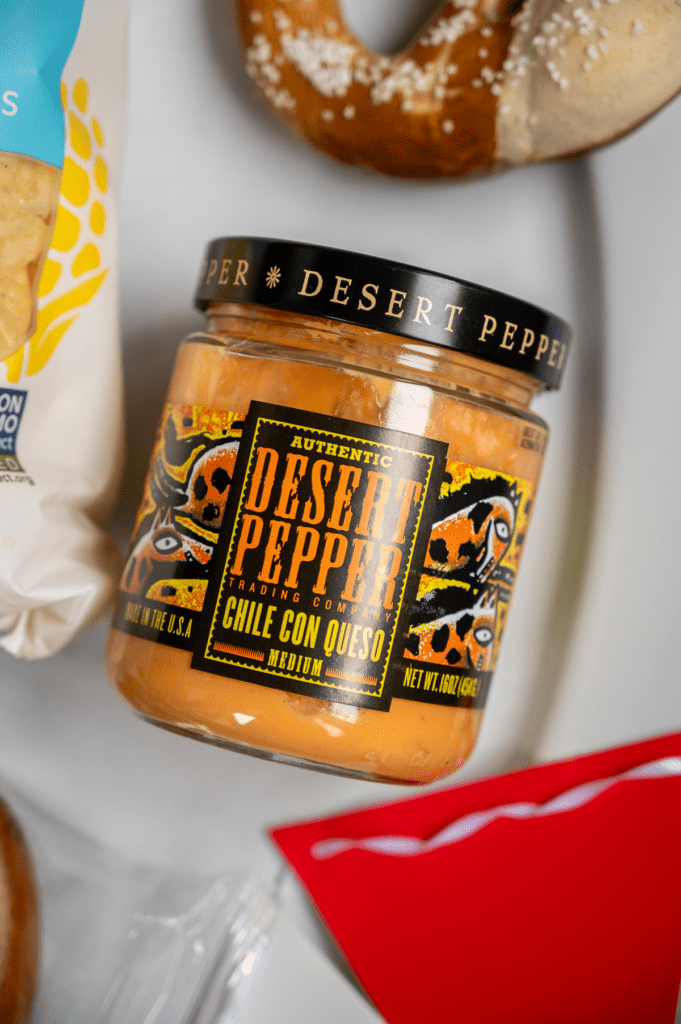 Top off the tortilla chips with Desert Pepper Chile con Queso, the newest addition to the brand’s award-winning line of salsas crafted in the Southwest region of the U.S. This delicious queso dip is made with creamy golden cheddar cheese and blended with green and red chiles. The queso kicks up the spice and takes your plate of chips to a whole new level.