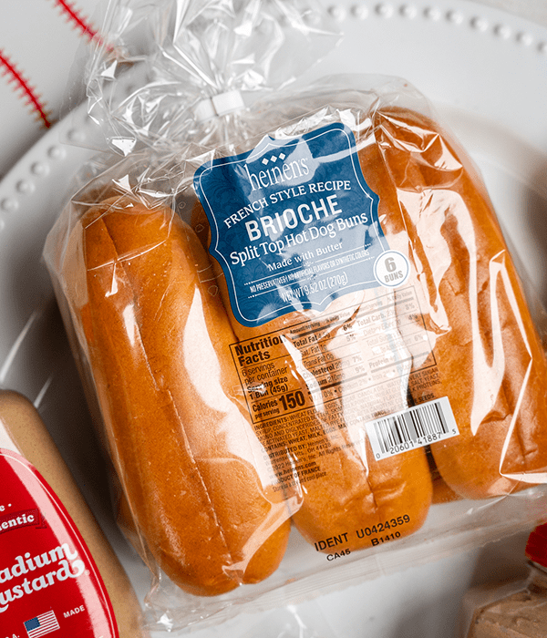 1. Heinen’s Premium All Beef Hot Dogs and Heinen’s Brioche Split Top Buns