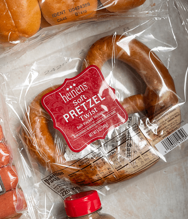Like our brioche split top buns, our soft pretzels contain no preservatives or artificial flavors. Simply pop them into the microwave for three minutes, add the signature chunky salt and you’ll have a hot pretzel for the win.